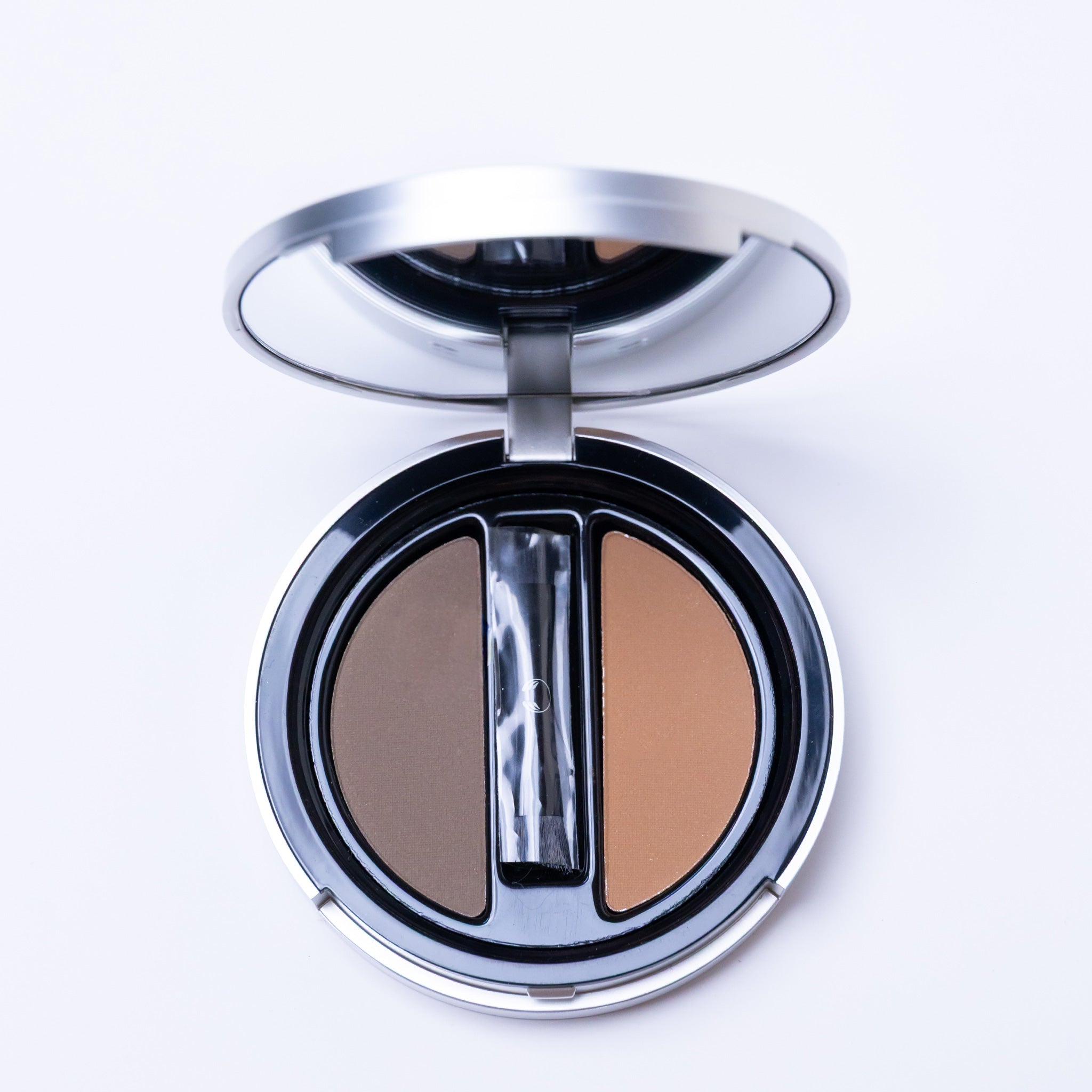 2. بعد تحديد شكل الحاجب بالفرشاة، قومي بتعميق اللون باستخدام بودرة.