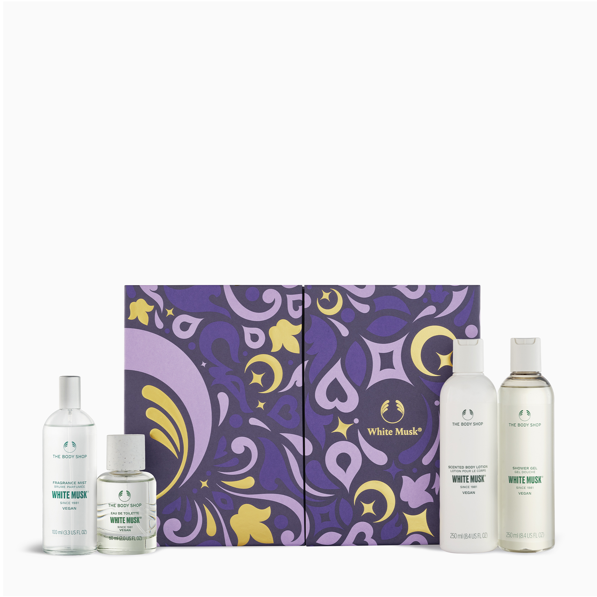 استمتع بسحر المسك الأبيض الأيقوني، عطر ناعم ومريح يمنحك تدليلاً من الرأس حتى القدمين. من تنظيف معطر ولطيف على البشرة إلى لوشن جسم مغذٍ، ورذاذ يدوم طويلاً، وأو دو تواليت أنيق، تضيف هذه المجموعة لمسة فاخرة وناعمة إلى روتينك اليومي. مثالية لمن يحبون الروائح الرقيقة والخالدة وتجربة العناية المتكاملة.